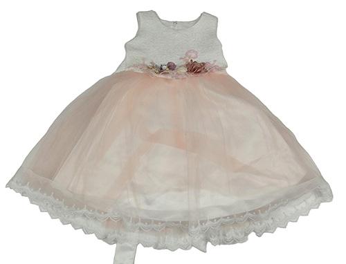Bielo-svetloružové slávnostné šaty s kvetinami a perlami
