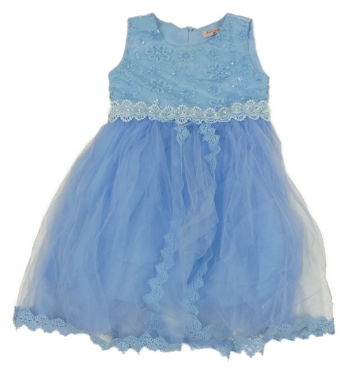 Svetlomodré slávnostné šaty s výšivkami květin a čipkou