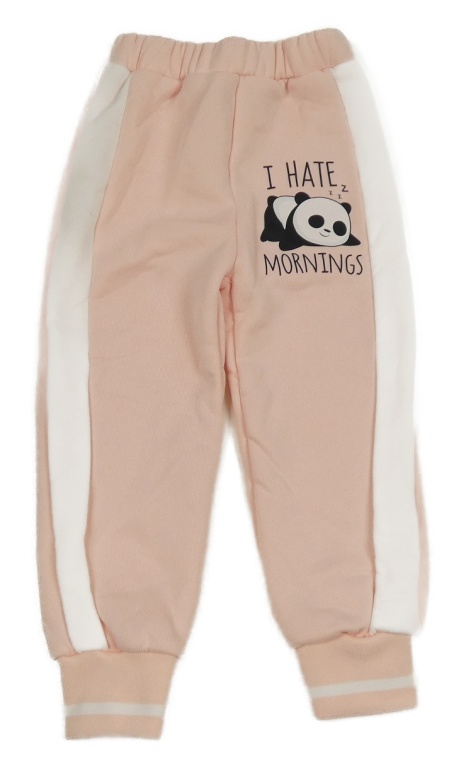 Svetloružové tepláky s bielým pruhom a pandou