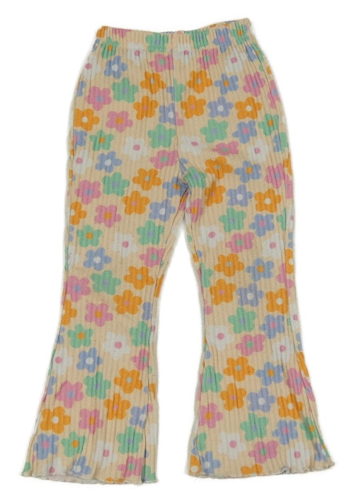 Vanilkovo-farebné kvetované pletené flare nohavice Shein