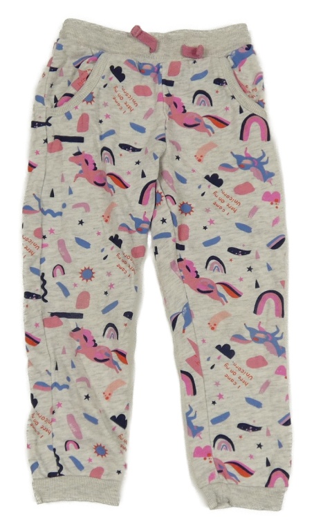 Svetlosivé melírované tepláky s jednorožcami a duhami Nutmeg