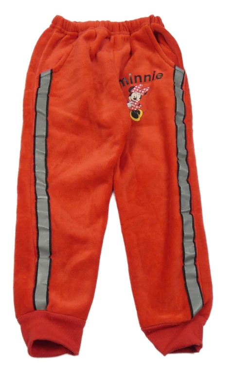 Červené plyšové tepláky s Minnie a pruhom