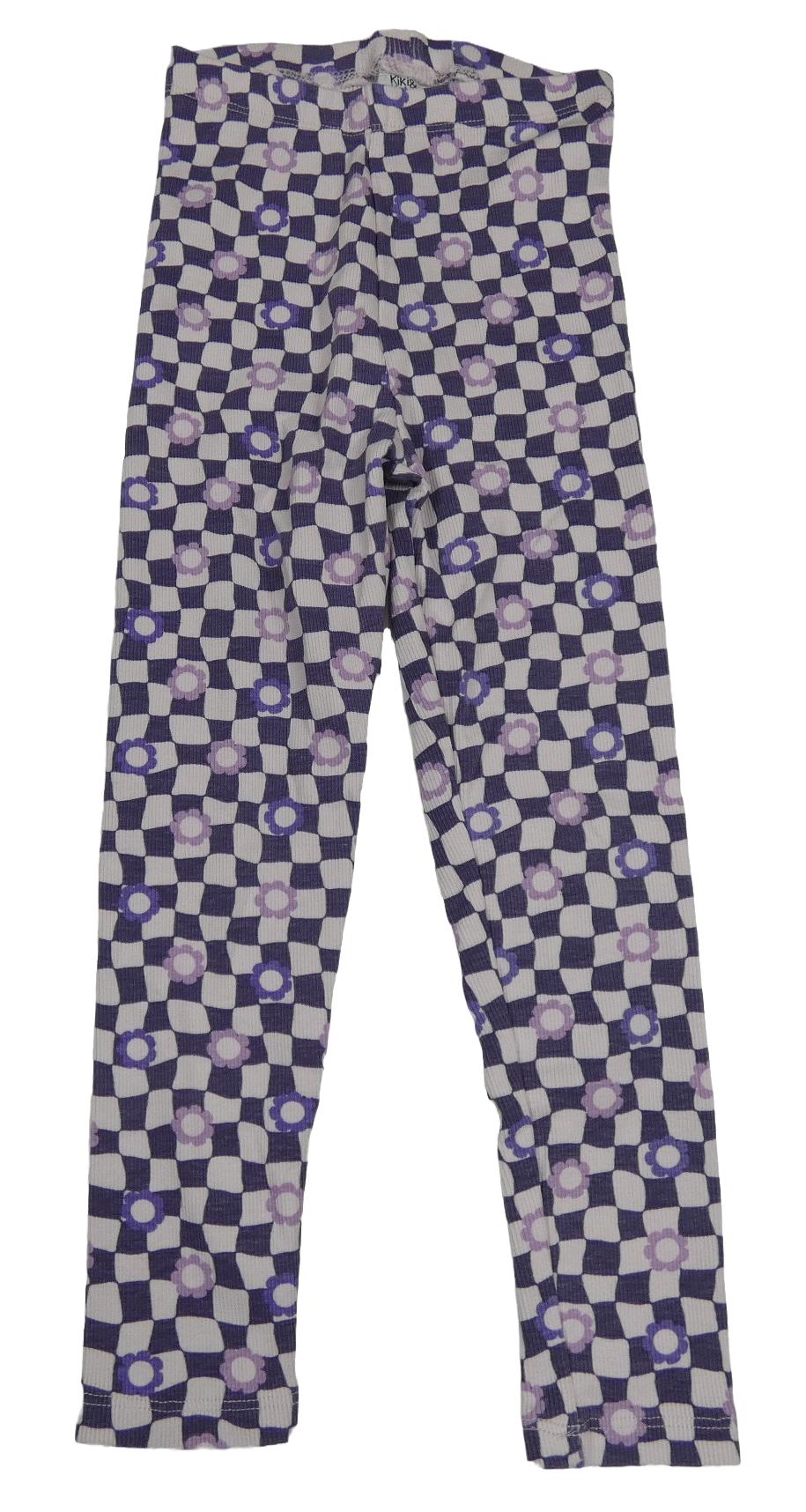 Lila-fialové kockované rebrované legíny s kvetinami Kiki&Koko