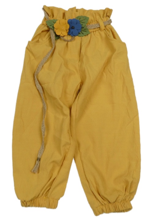Horčicové ľahké nohavice s opaskom s kvetinami