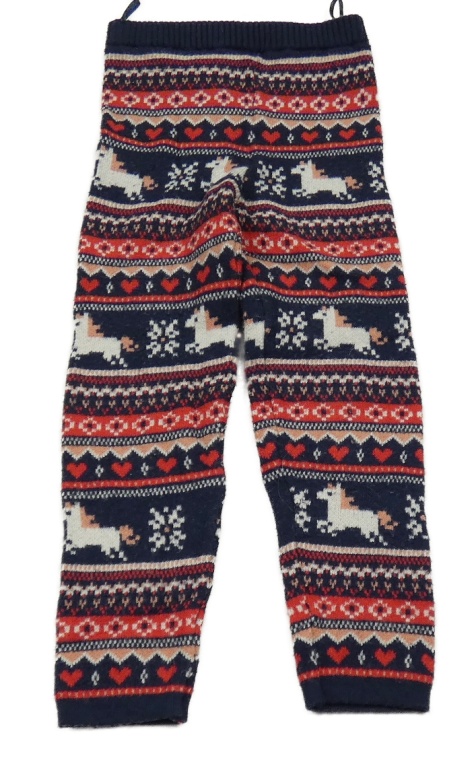 Tmavomodro-červené vzorované kamaše s koníky a srdiečkami C&A