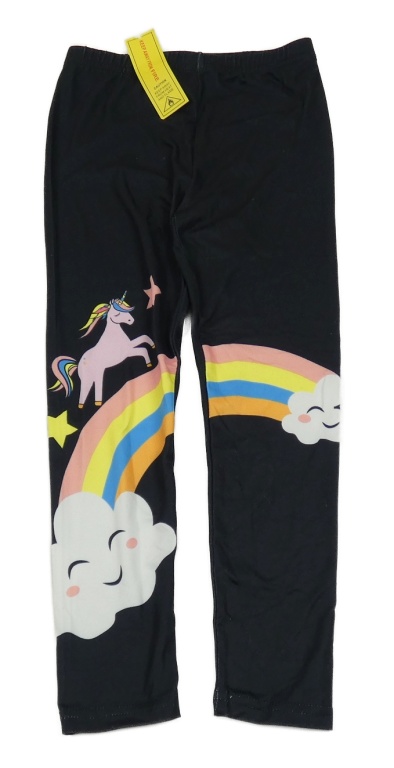 Nové - čierne legíny s jednorožcom a duhami a obláčikmi SHEIN