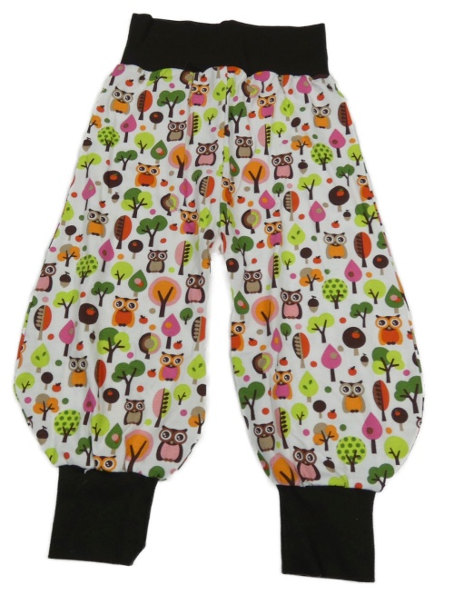 Bielo-hnedo-farebné tepláky so stromami a sovami