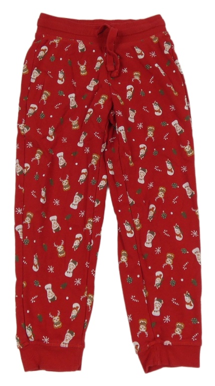 Červené vianočné tepláky so zvieratkami a stromčekmi a lízátky lupilu