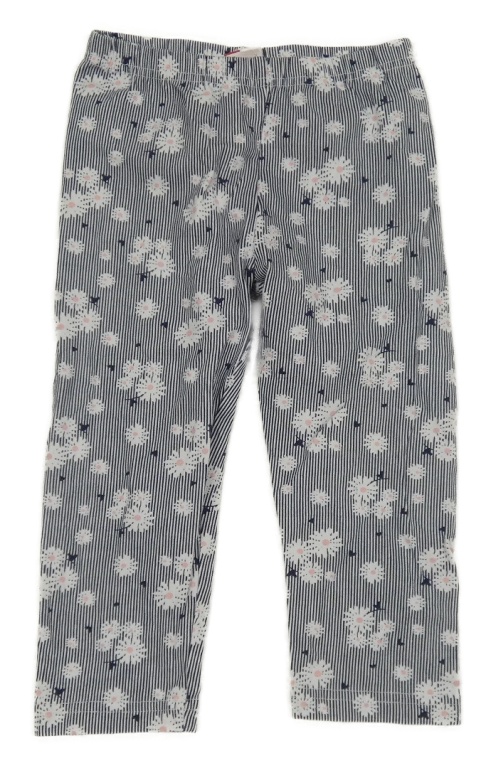 Tmavomodro-biele pruhované capri legíny s kvetinami Topolino