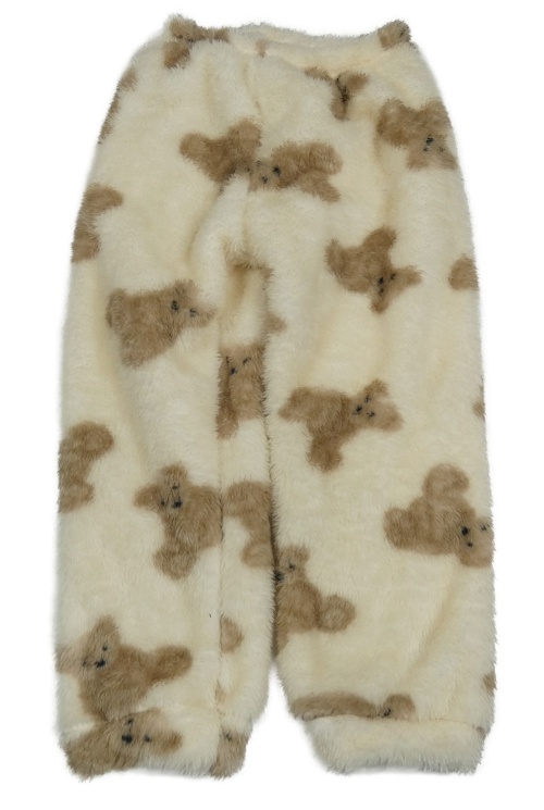 Smotanové chlpaté tepláky s medveďmi shein