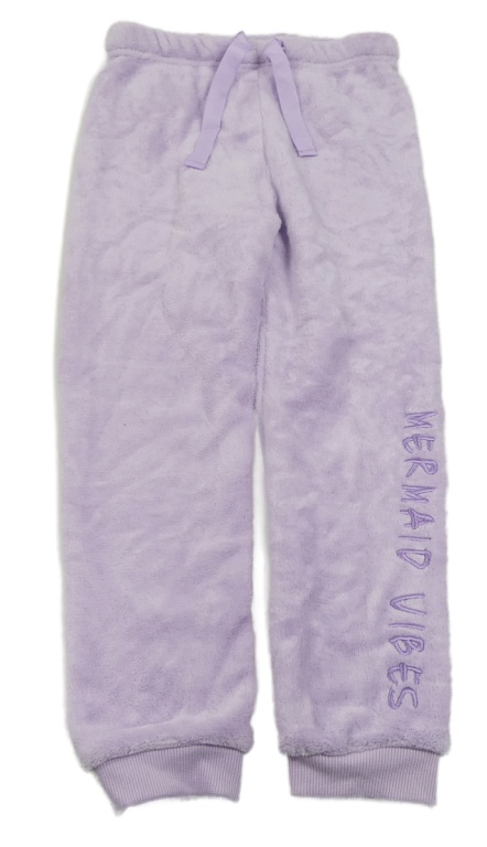 Lila plyšové tepláky s nápisom