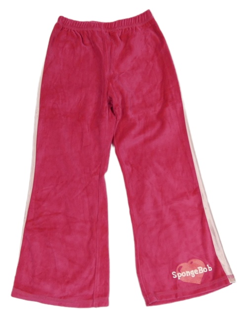 Ružové zamatové nohavice so Spongebobem a prúžkami