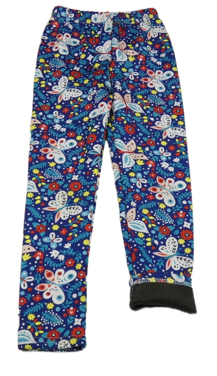 Tmavomodro-červeno-farebné kvetované zateplené legíny s motýlikmi