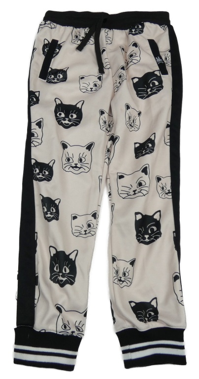 Světlepudrovo-čierne tepláky s kočičkami a pruhmi SIX BUNNIES