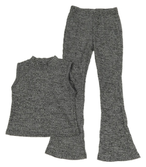 2 set - tmavošedo-čierny melírovaný pletený top + flare úpletové legíny