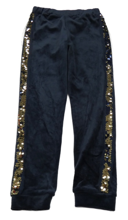 Tmavomodré zamatové tepláky s pruhem z flitrů Pep&Co