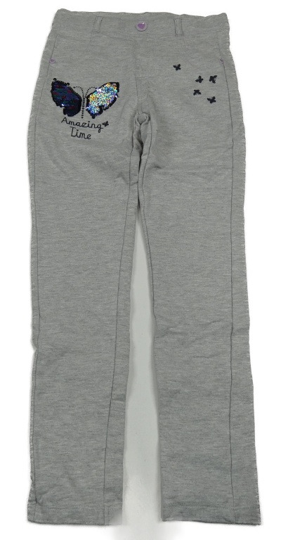 Sivé melírované tregíny s motýlem z překlápěcích flitrů Kids