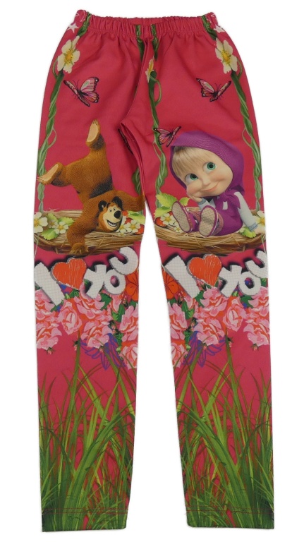Tmavorůžovo-zelené teplákové legíny s obrázkem - Máša a medvěď
