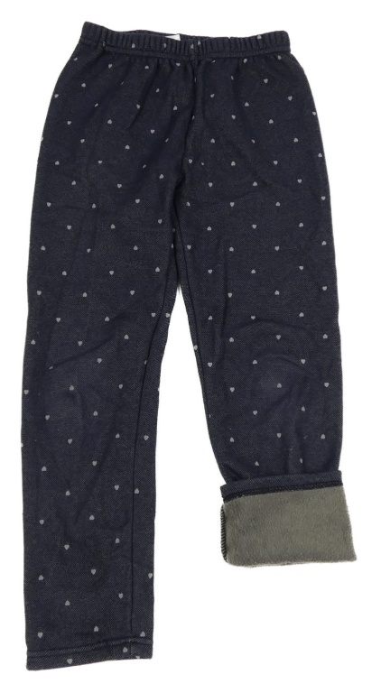 Tmavomodré zateplené legíny riflového vzhledu so srdiečkami Topolino