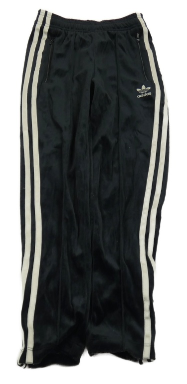 Čierne zamatové tepláky s pruhmi Adidas