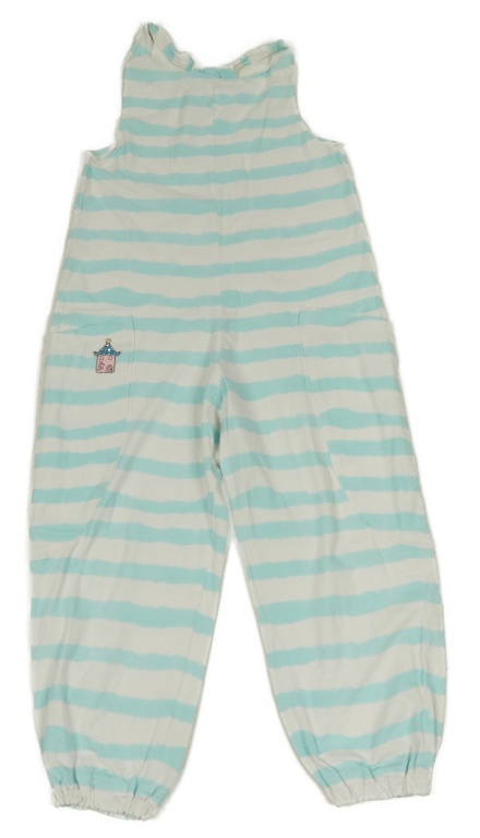 Bielo-svetlomodrý pruhovaný ľahký teplákový overal s domečkem