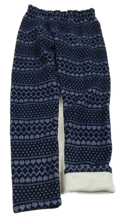 Tmavomodro-modré vzorované plyšové zateplené legíny so srdiečkami Topolino