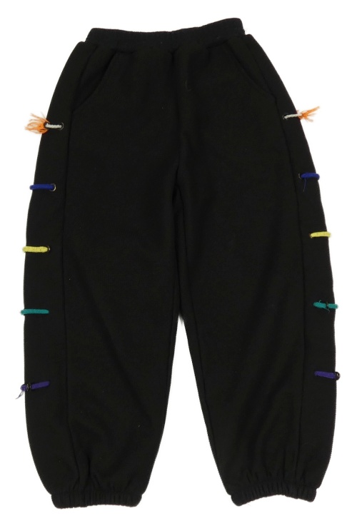 Čierne rebrované teplákové tepláky s barevnými tkaničkami