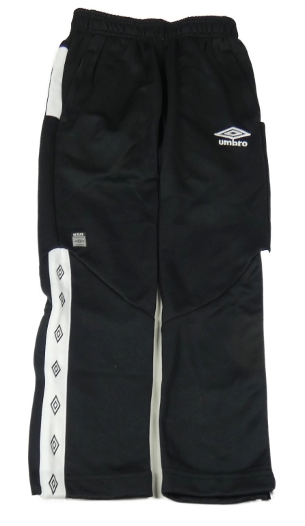Čierne športové tepláky s bielým pruhom a logom Umbro
