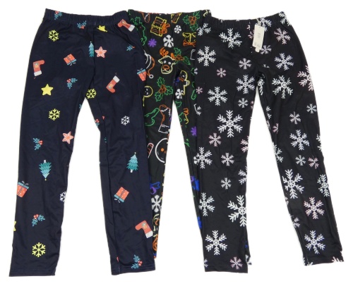 Nové - 3x - Vánoční legíny - Tmavomodré a černé s obrázky, černé s vločkami PatPat