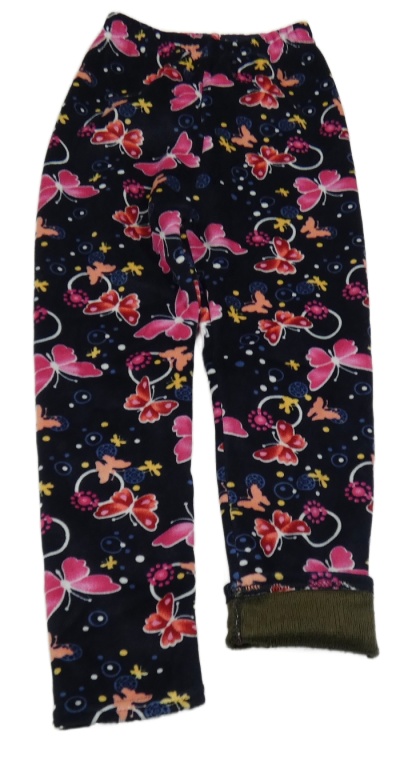 Tmavomodro-ružové plyšové legíny s motýlikmi
