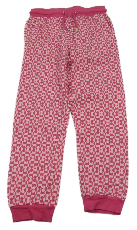 Světle-tmavoružové kockované tepláky s kvietkami