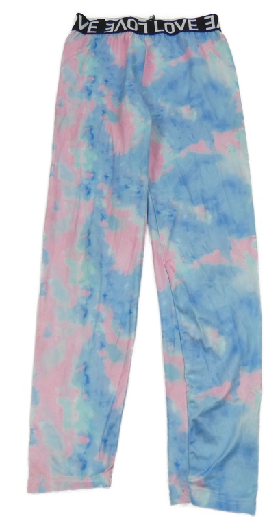 Modro-ružové vzorované športové legíny s nápisem v pase