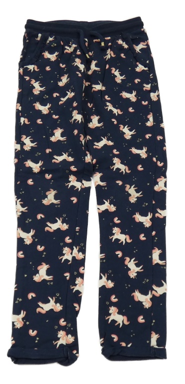 Tmavomodré tepláky s jednorožcami a duhami a volánikmi C&A