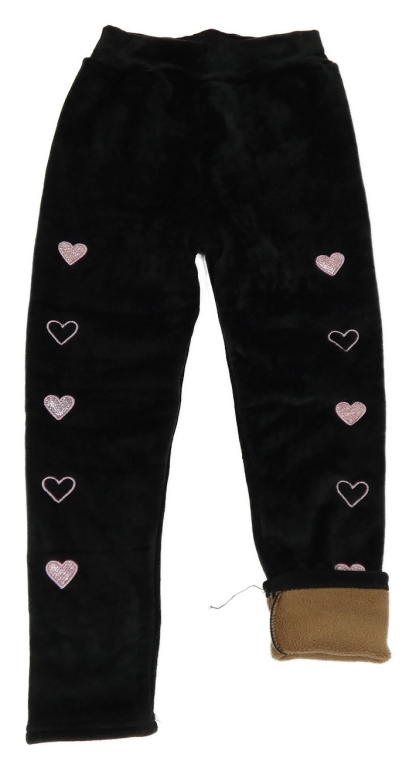 Čierne plyšové zateplené legíny so srdiečkami