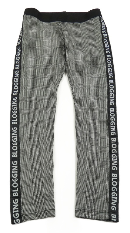 Sivo-čierne kockované tregíny s pruhom s nápismi C&A
