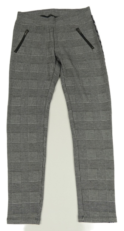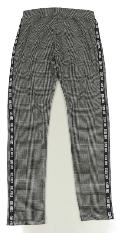 Sivo-čierne kockované tregíny s pruhom s nápismi C&A