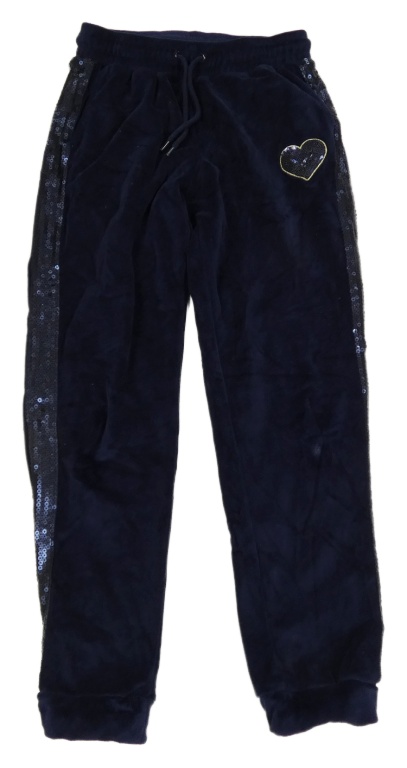 Tmavomodré zamatové nohavice so srdiečkom a flitrami