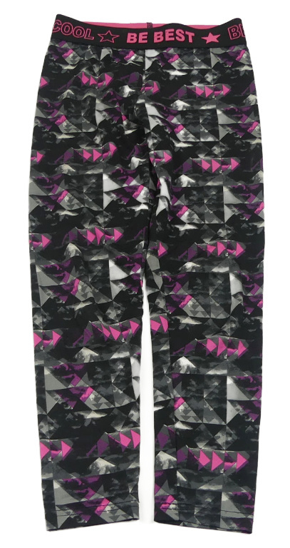 Čierno-sivo-kriklavoě ružové vzorované športové legíny s nápismi