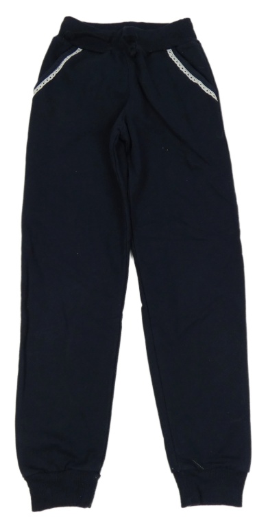 Tmavomodré tepláky s čipkovymi volániky