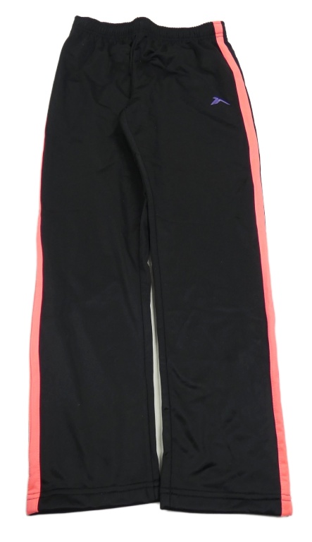 Čierne športové tepláky s kriklavoě korálovým pruhom