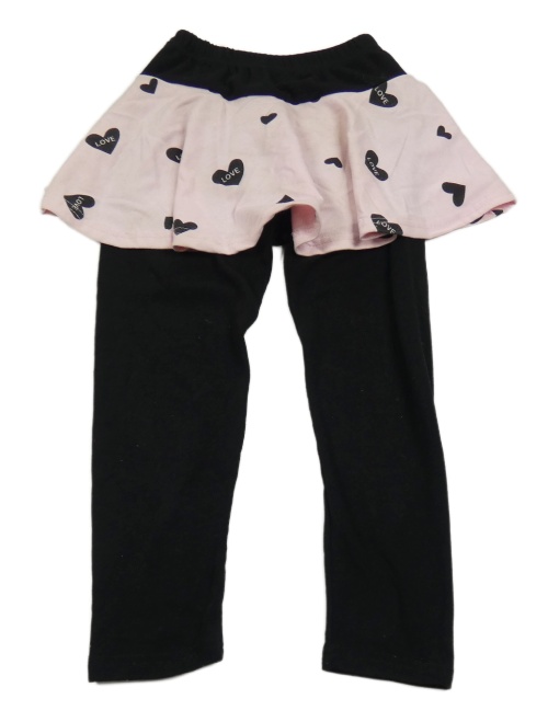 Čierne capri legíny so světlerůžovou sukní a srdiečkami