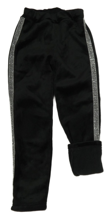 Čierne plyšové zateplené legíny so strieborným pruhom