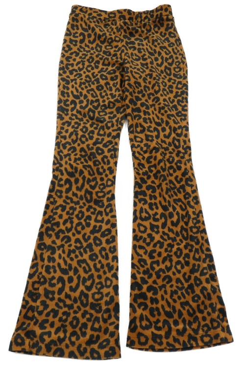 Hnedé plyšové flare tepláky s leopardím vzorom