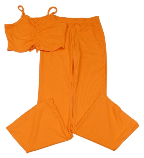 2set - Neónově oranžové rebrované flare legíny + crop top Shein