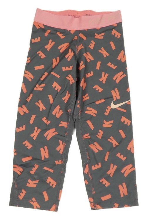 Sivo-neónově lososové športové funkčné capri legíny s písmeny Nike