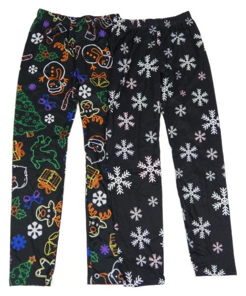 2 x legíny - černé s vločkami + černé s farebnymi obrázky