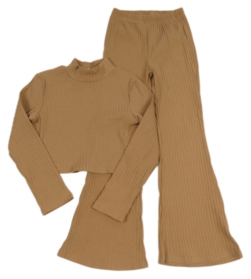 2 set - hnedé rebrované flare legíny + crop tričko shein