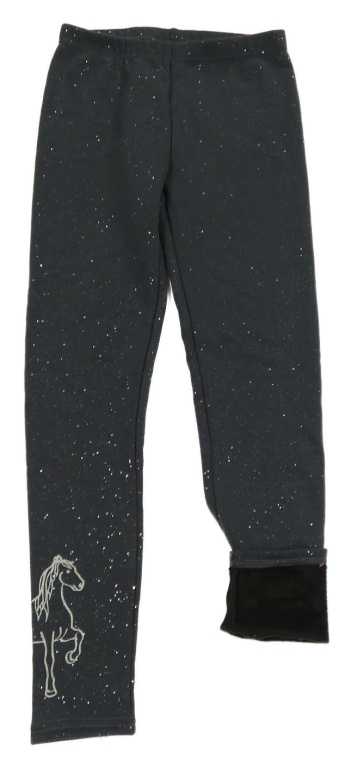 Antracitové trblietavé zateplené legíny s koněm Yigga