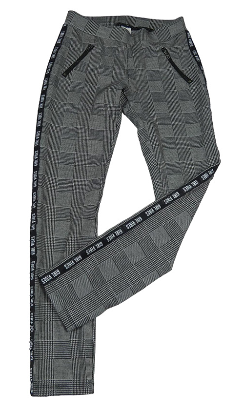 Sivo-čierne kockované tregíny s pruhom s nápismi C&A
