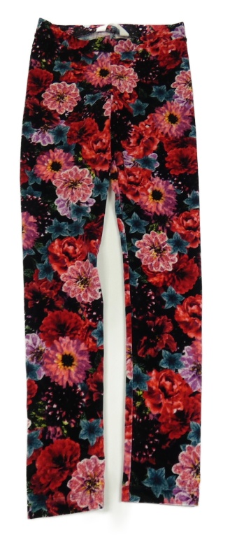 Čierno-červeno-ružové kvetované zamatové legíny H&M